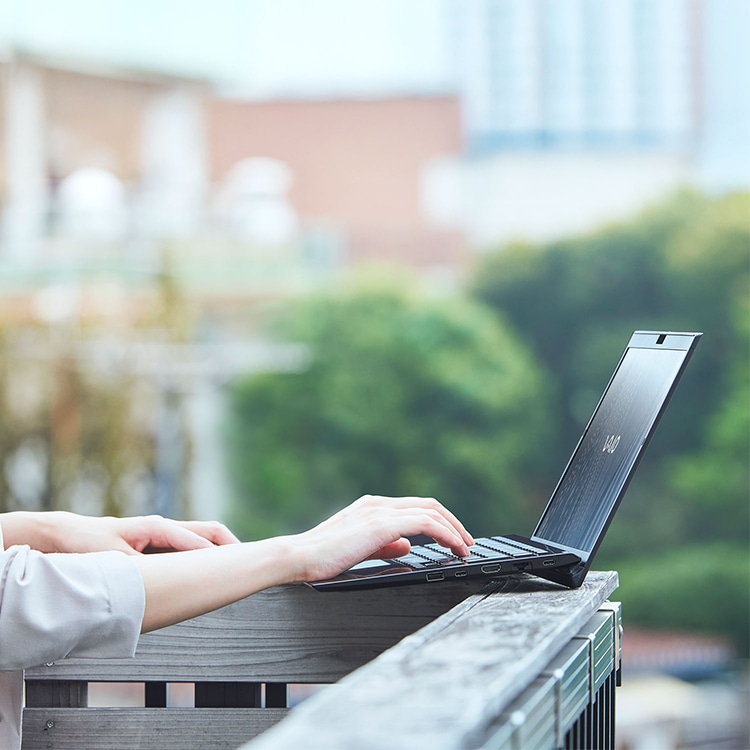 14.0型ワイドの大画面ながら、約1.080kgのコンパクトボディ。さらに、本体だけで通信可能なSIMフリー4G LTE対応で、いつでもどこでも使えるモビリティを備えています。※別途SIMをご用意いただく必要があります。