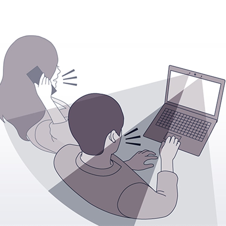 騒がしいカフェでは自分の声だけ、会議室では複数人の声を拾うなど、ワンタッチで最適なノイズ除去範囲を設定可能。快適なオンラインコミュニケーションを実現します。
