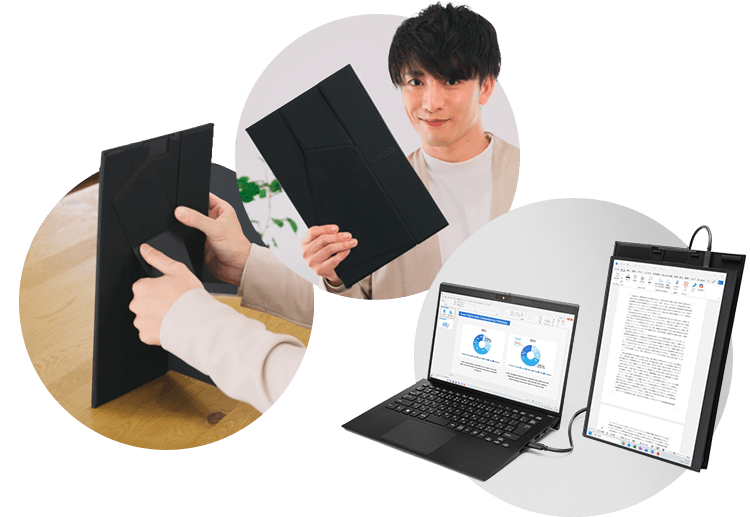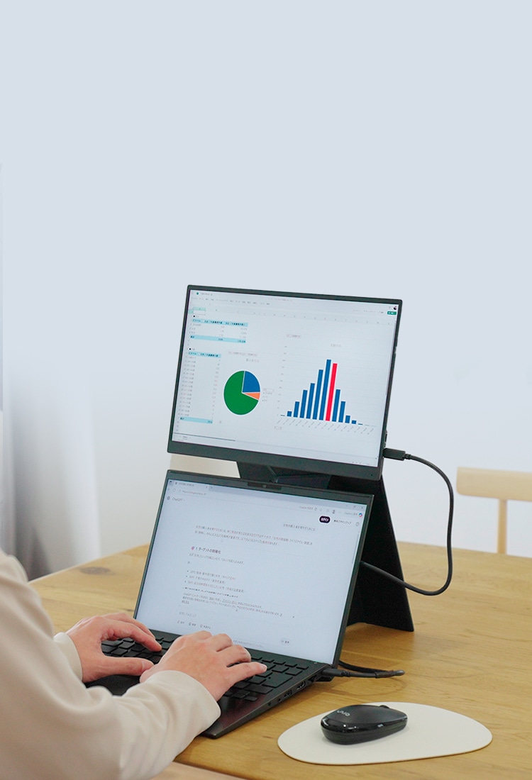狭いデスクでも使える上下二画面にも対応。