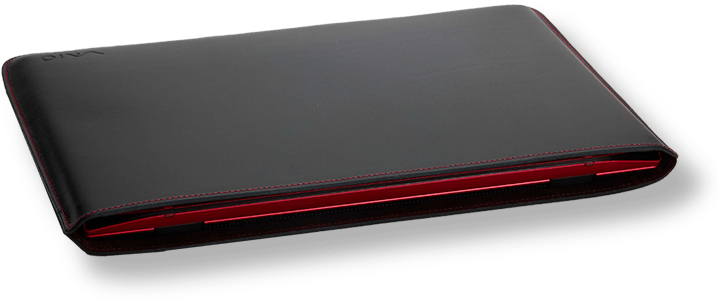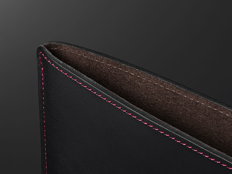 VAIO SX14-Rの木型を制作し、それをレザーケースに押し込むことで立体に成型しているので、使い始めからジャストフィットするよう作られています。