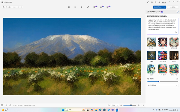 プライベートで撮った写真を、サイバーパンクやピクセルアートといったプリセットスタイルを使用して、画像全体の雰囲気が変えられます。