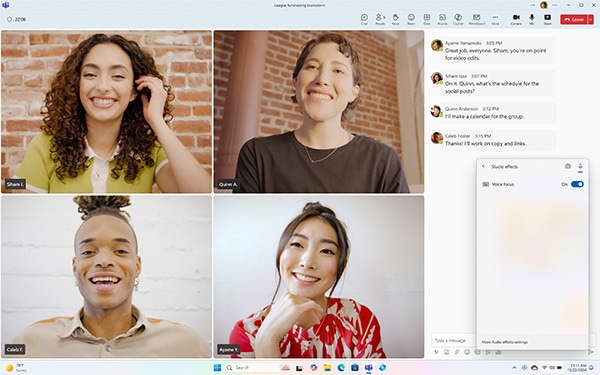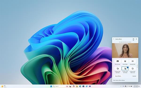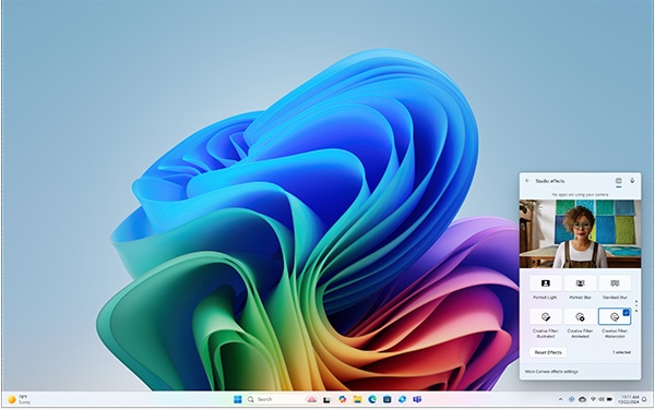 Windows スタジオ エフェクトで明るさの調整や雑音の削除、自然なアイコンタクトなど、よりビデオ会議に集中できる環境へと変えてくれます。